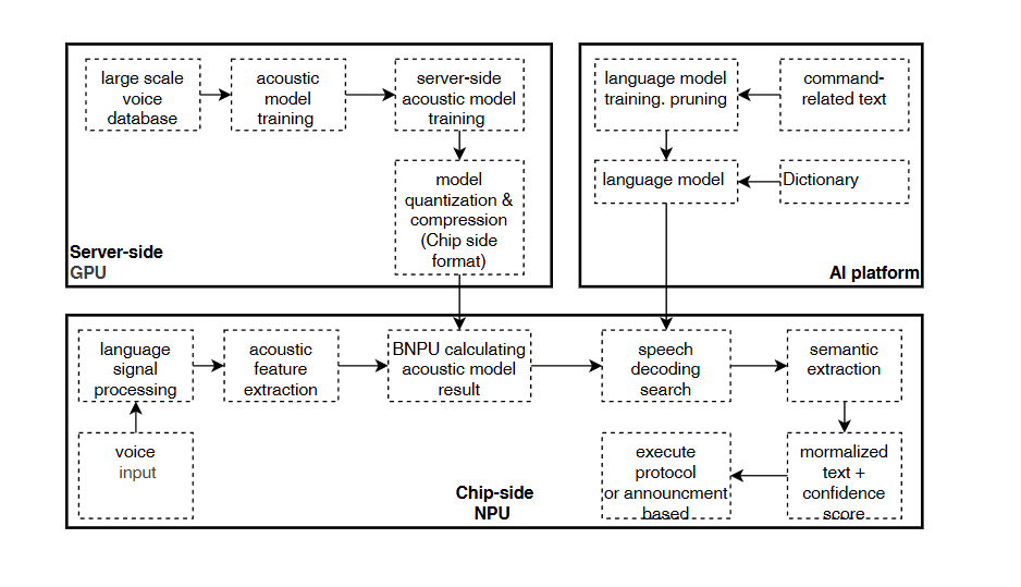 ASR (Automatic Speech Recognition) refers to the technology that converts human speech to text in real time using algorithms. Offline speech command recognition is a type of speech recognition that processes audio signals on the local device (without relying on cloud servers; no internet connection required) and converts them into predefined text commands. The device’s built‑in model directly parses spoken keywords or phrases and triggers corresponding local actions.