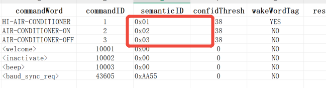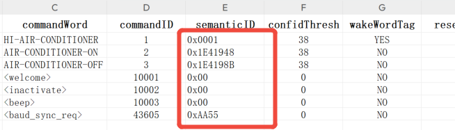 SDK\projects\sample_xxx\firmware\user_file\cmd_Info[60000]xxx.xlscommand word list file,[60000]xxx.xlssemantic ID will be automatically generated. If the generated default semantic ID is shown in the following figure.