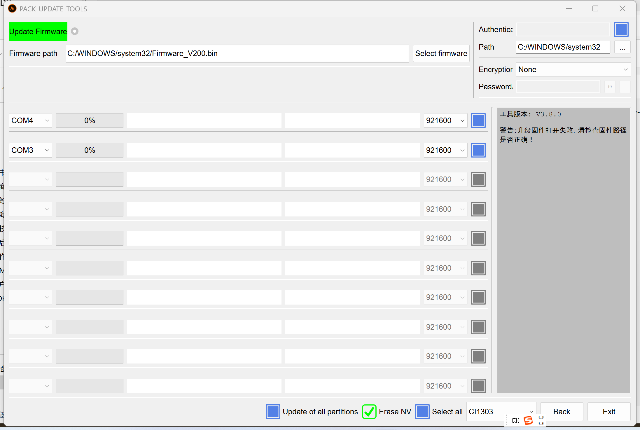 - Click “Firmware Update” to program the merged firmware